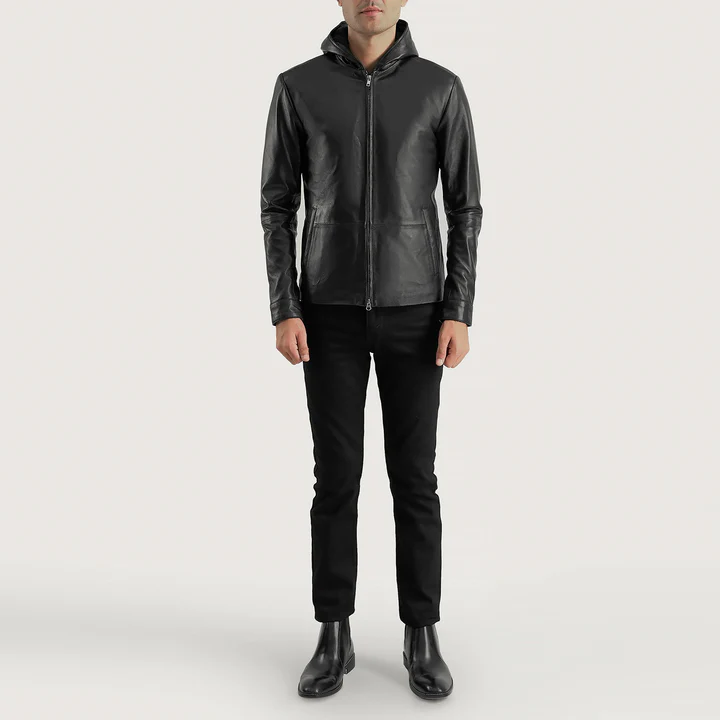 Elevate Your Urban Edge with the Andy Matte Black Hooded Leather Jacket