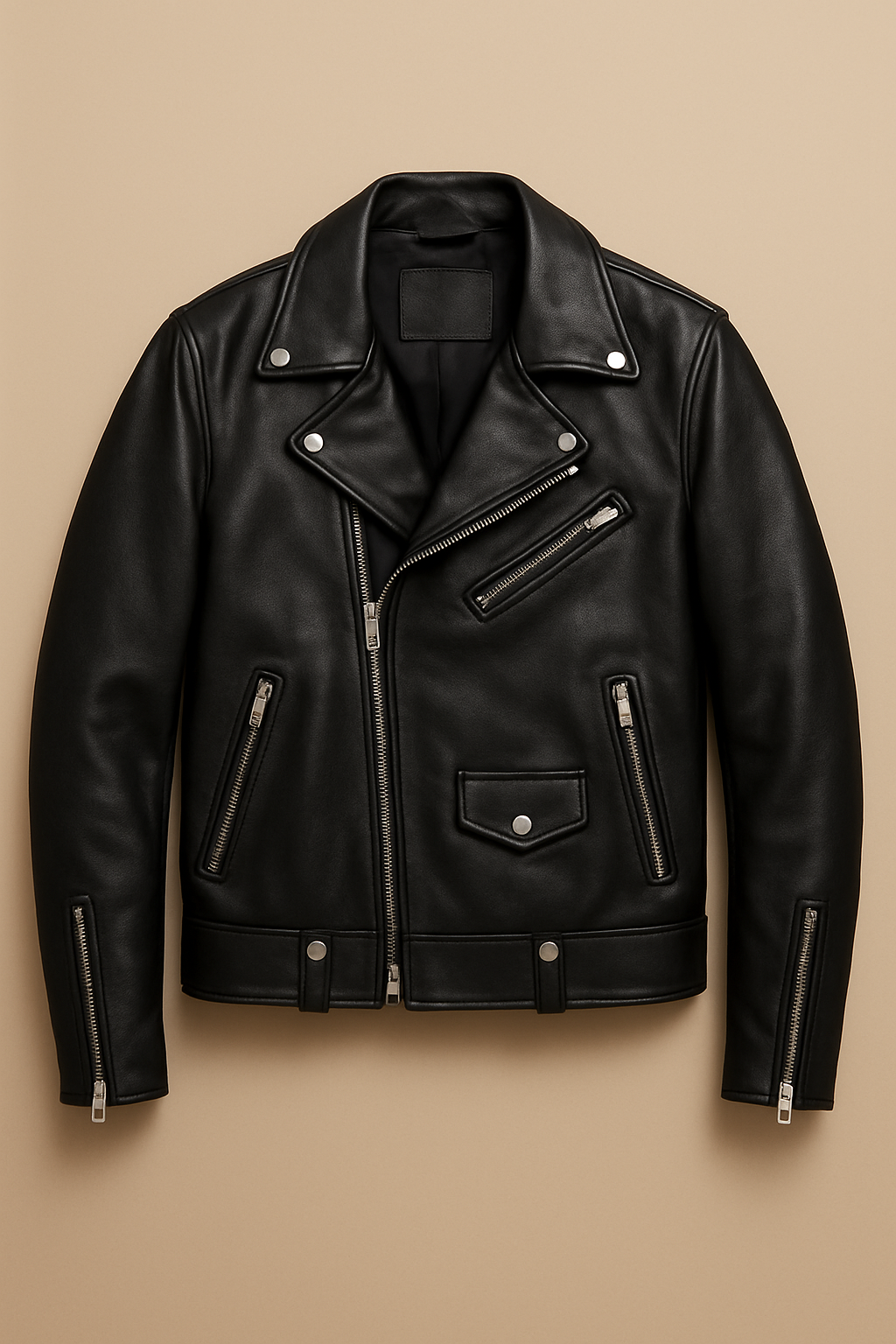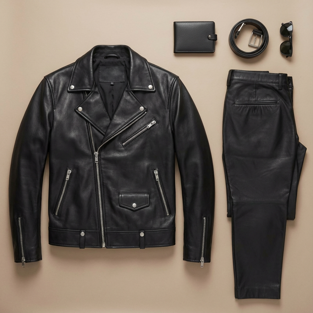 Premium Men’s Black Leather Biker Jacket and Matching Trousers Set